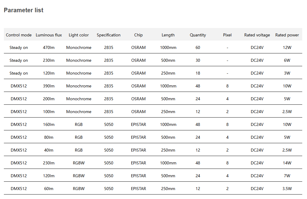 Control mode: ON/OF, DMX512