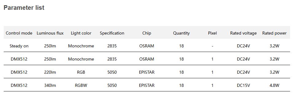 Control mode: ON/OF, DMX512