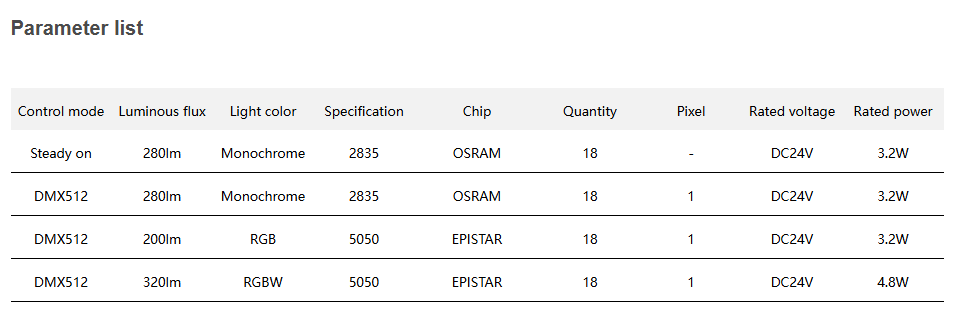 Control mode: ON/OF, DMX512